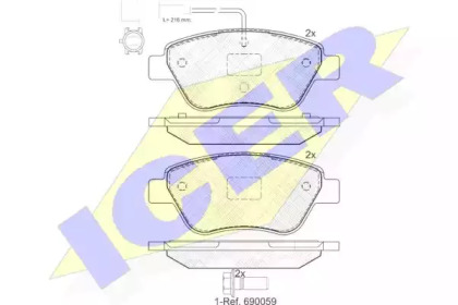 Комплект тормозных колодок, дисковый тормоз. ICER 181444203