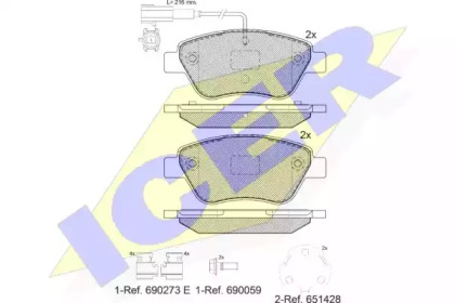 Комплект тормозных колодок, дисковый тормоз. ICER 181444208