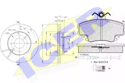 Комплект тормозов, дисковый тормозной механизм. ICER 309936572