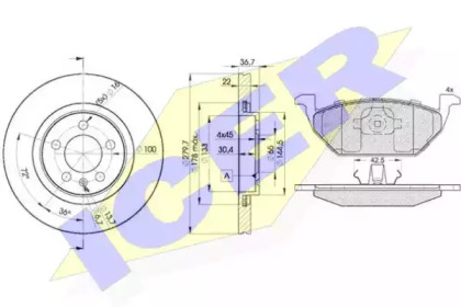 Комплект тормозов, дисковый тормозной механизм. ICER 311845603