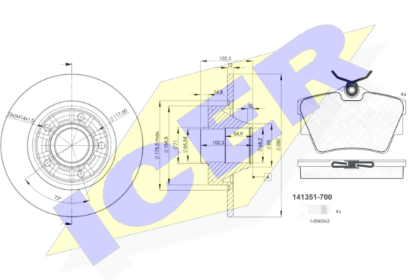 Комплект тормозов, дисковый тормозной механизм. ICER 313516846