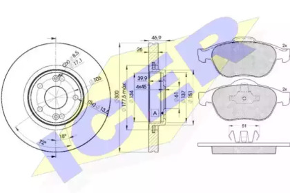 Комплект тормозов, дисковый тормозной механизм. ICER 314322235