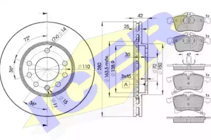 Комплект тормозов, дисковый тормозной механизм. ICER 315929060