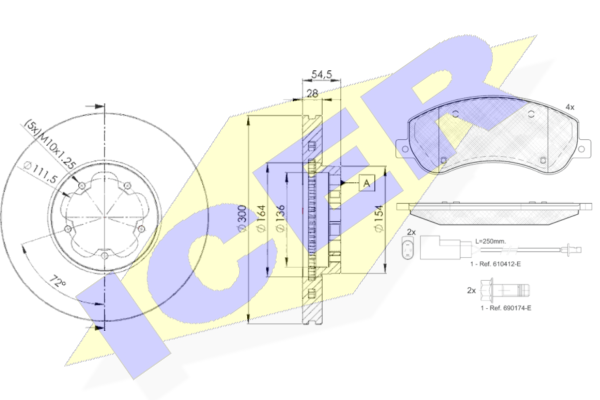 Комплект тормозов, дисковый тормозной механизм. ICER 317935630