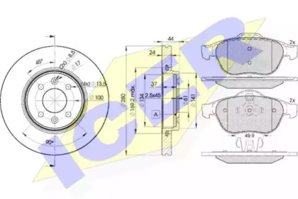 Комплект тормозов, дисковый тормозной механизм. ICER 318617829