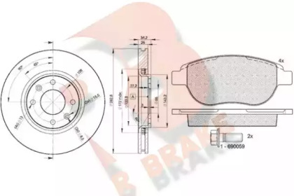 Комплект тормозов, дисковый тормозной механизм. R BRAKE 3R14294752