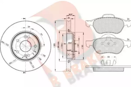 Комплект тормозов, дисковый тормозной механизм. R BRAKE 3R14312234