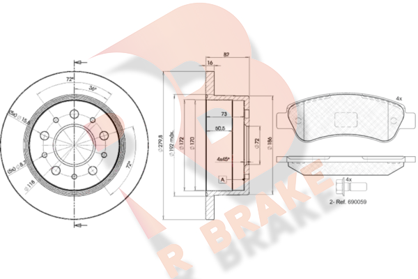 Комплект тормозов, дисковый тормозной механизм. R BRAKE 3R18043806