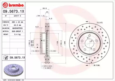 Тормозной диск. BREMBO 0956731X
