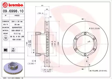 Тормозной диск. BREMBO 09699810