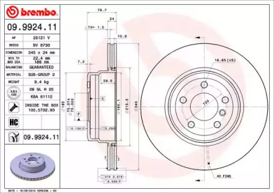 Тормозной диск. BREMBO 09992411