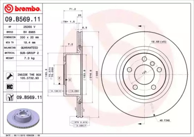 Тормозной диск. BREMBO 09B56911