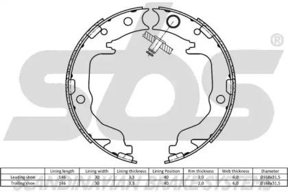 Комплект тормозных колодок, стояночная тормозная система. SBS 18492793799