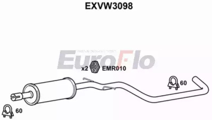 Средний глушитель выхлопных газов. EUROFLO EXVW3098