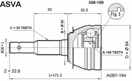 Шарнирный комплект, приводной вал. ASVA GM109