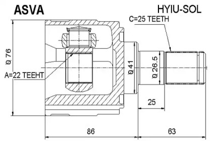 Шарнирный комплект, приводной вал. ASVA HYIUSOL