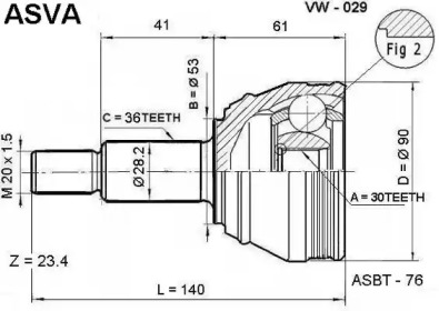 Шарнирный комплект, приводной вал. ASVA VW029