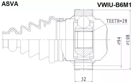 Шарнирный комплект, приводной вал. ASVA VWIUB6M1