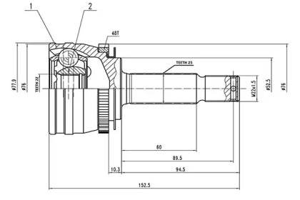 Шарнирный комплект, приводной вал. AYWIPARTS AW1510658A