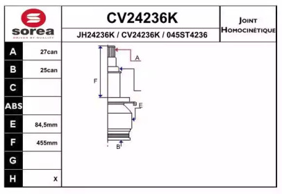 Шарнирный комплект, приводной вал. EAI CV24236K