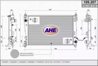 Радиатор, охлаждение двигателя. AHE 109207